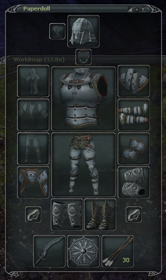 Another frequently used window of Darkfall is the so-called Paperdoll Window. It has slots where the player can drop wearable items to wear them.