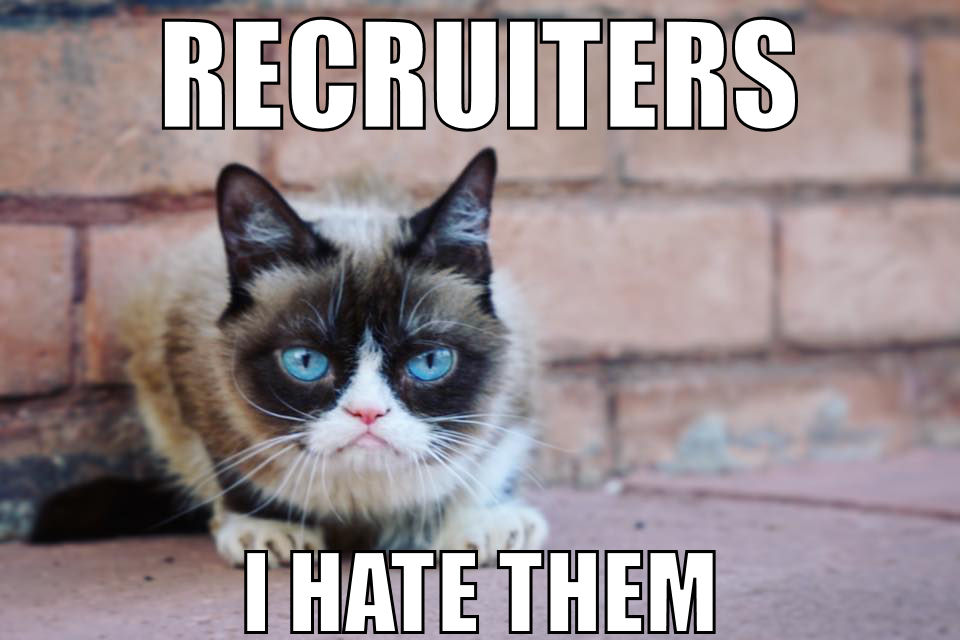 | Mandatory grumpy cat meme -- "Recruiters - I hate them" |