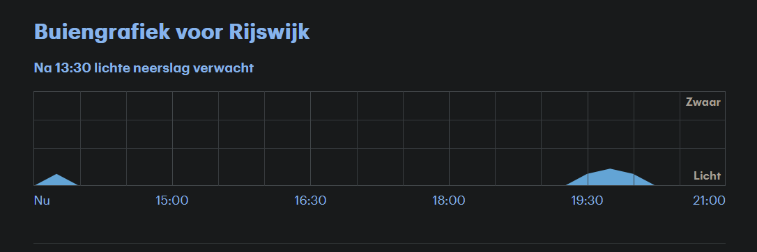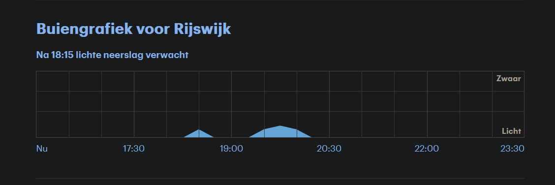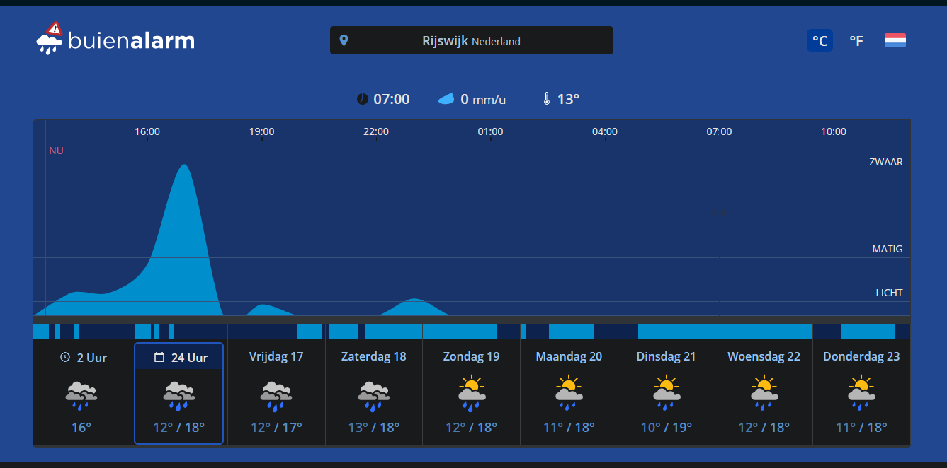Around 13:00 I wanted to know what the weather was going to be at 17:00, and I noticed that buienradar was predicting complete dryness, whereas buienalarm was predicting torrential rain.